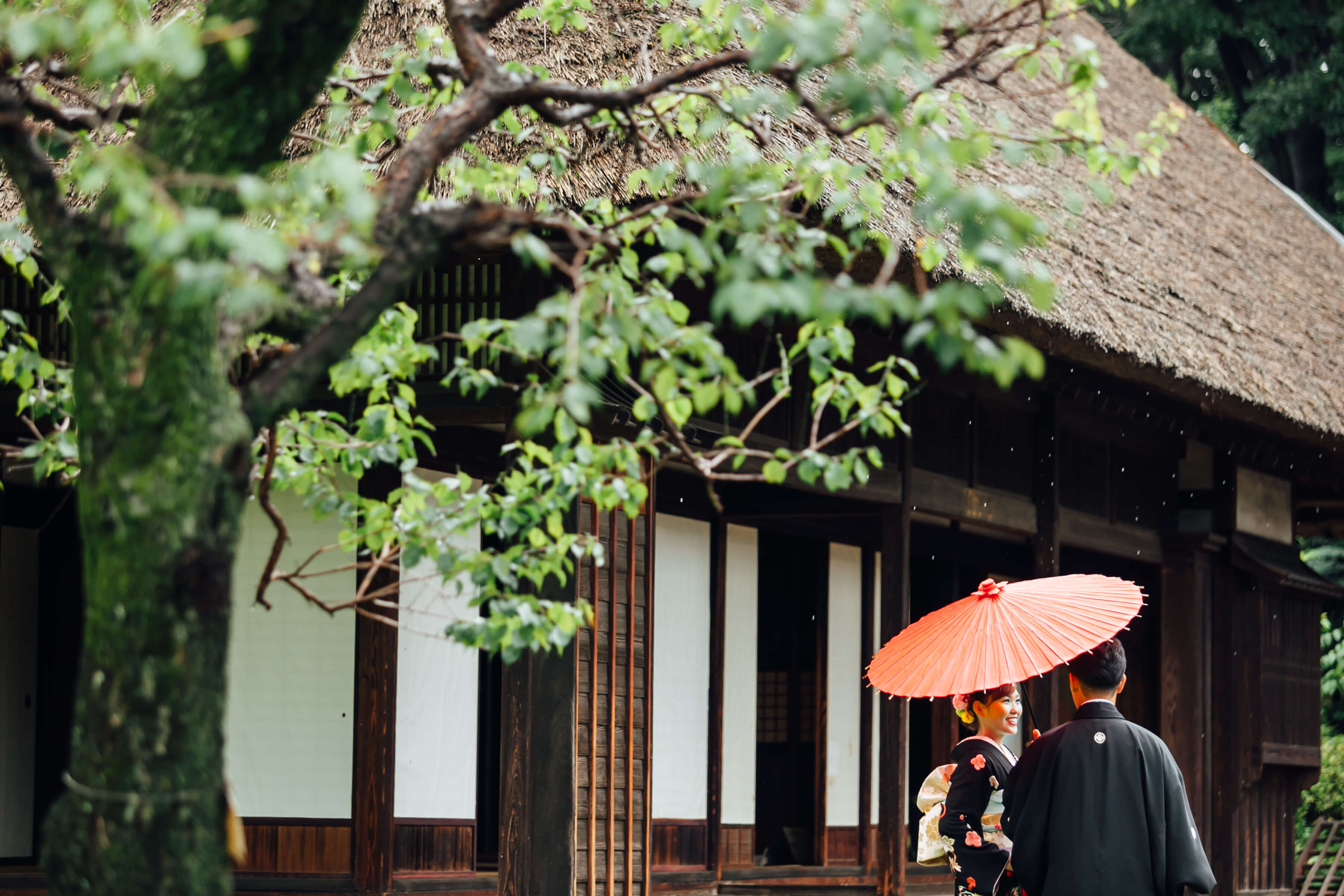在日本庭園提前拍攝的和服(日式婚紗)攝影